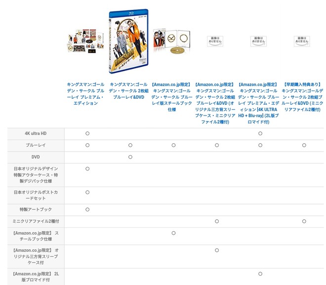 일본에서는 전편대비 두배가까운 수익을 얻은 (1편9억엔 2편15-16억엔) 킹스맨 골든서클이 발매됩니다 기대했던 일본독점스틸북은 전세계공용판으로 일본역시 국내와 동일한 아트웍인듯하고 그나마 4k+블루레이 디지팩사양과 통상판 BD+DVD판에는 일본독점 클리어파일이 포함됩니다 발매일 4.6일