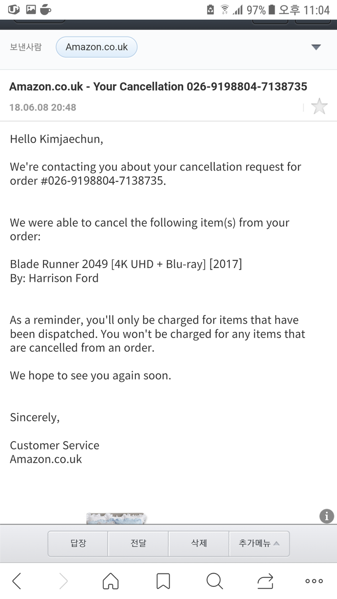 주문(결재) 후 바로 취소하셨나요? 미마존은 발송할때 결재가 되서 그전까진 언제 취소하든 안전빵 인데 영마존은 바로 결재가 됐나보네요 캔슬 썩세스 오면 아무튼 취소 완료 됐다는것이니 너무 염려하지 않으셔도 될거같습니다