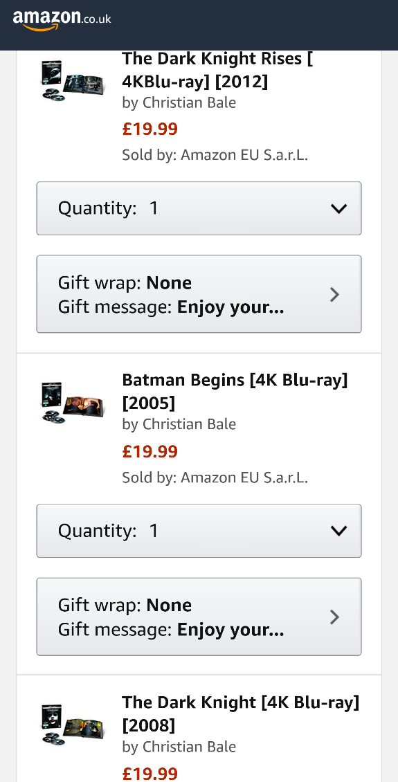 사야되나 고민되네요 아웃박스로 모아서 나왔으면 바로 질렀을텐데 The Dark Knight [4K Blu-ray] [2008] https://www.amazon.co.uk/dp/B07G1YKPHY/ref=cm_sw_r_cp_apa_OegVBb2432XAK