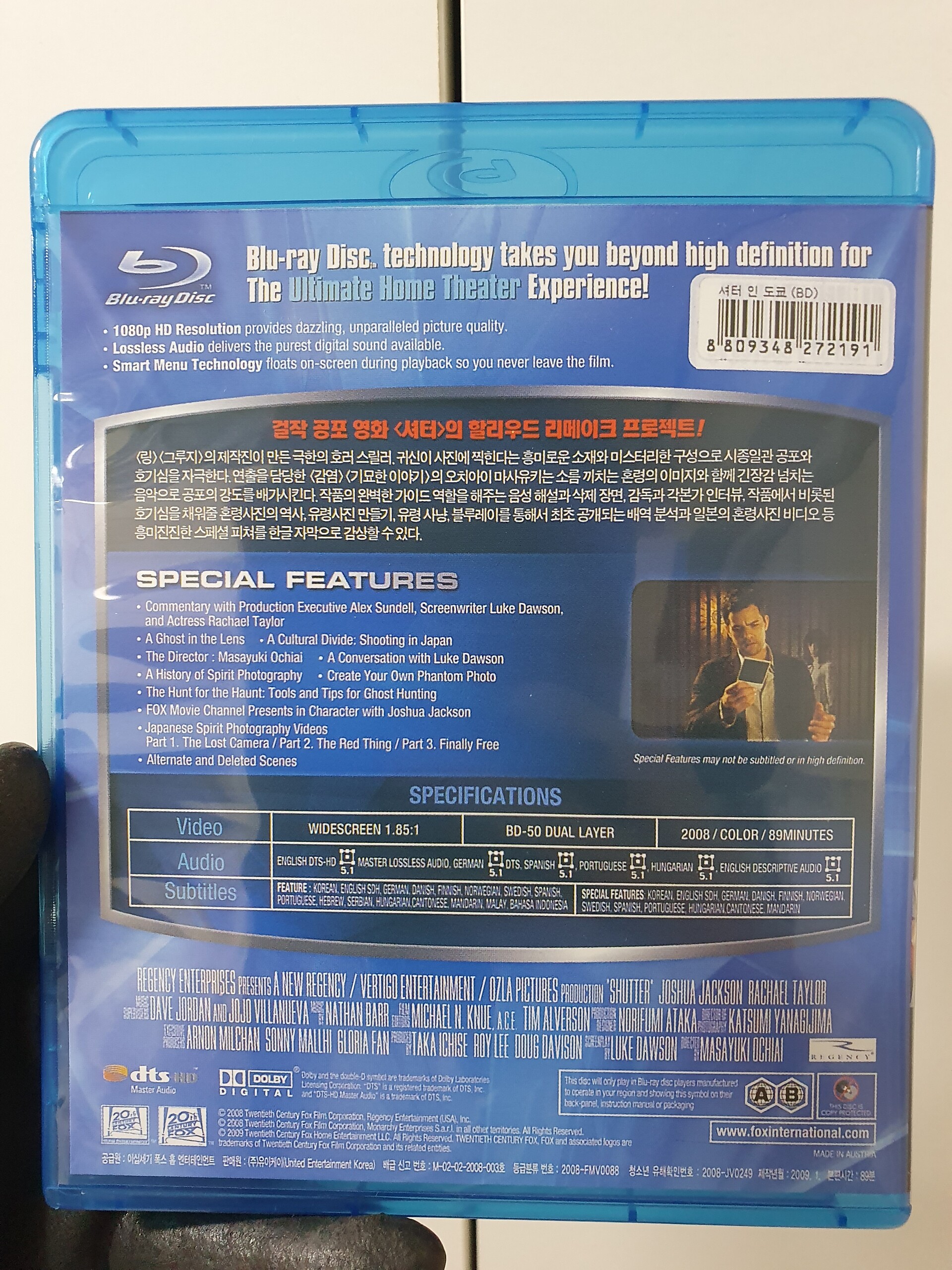 얼마전 특가로 있었던 타이틀이에요~제가 너무 재밌게 봤던 DVD로도 소장중인 태국 영화 [셔터] 리메이크이기도 하고...이제는 만나기 힘들어진 폭스~타이틀이라 사봤어요...특가지만 아주 충실합니다~!!!