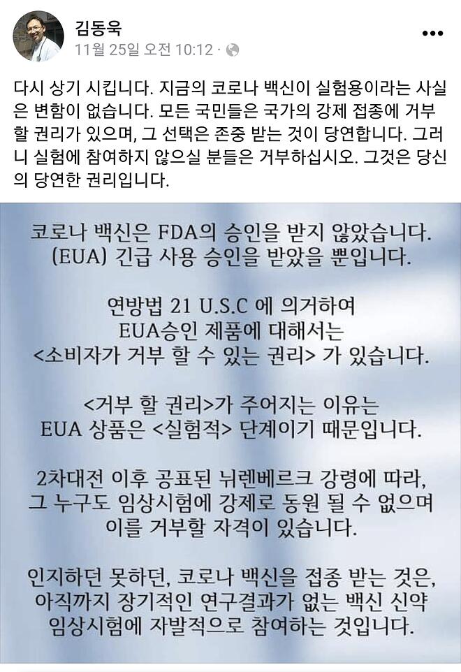자, 다음으로는 당연히 블로그의 원 출처인 우리 김동욱 원장님의 페이스북을 방문할 차례입니다.