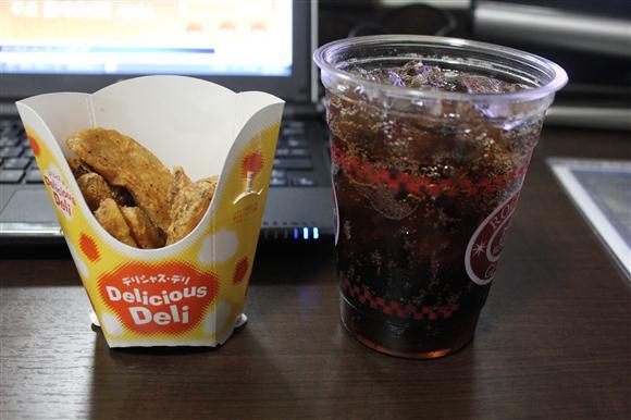 숙소에 돌아와서 먹은 간식, 감자튀김과 콜라입니다.