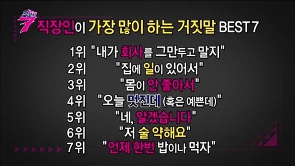 5위 제가 하는 가장 많이하는 거짓말