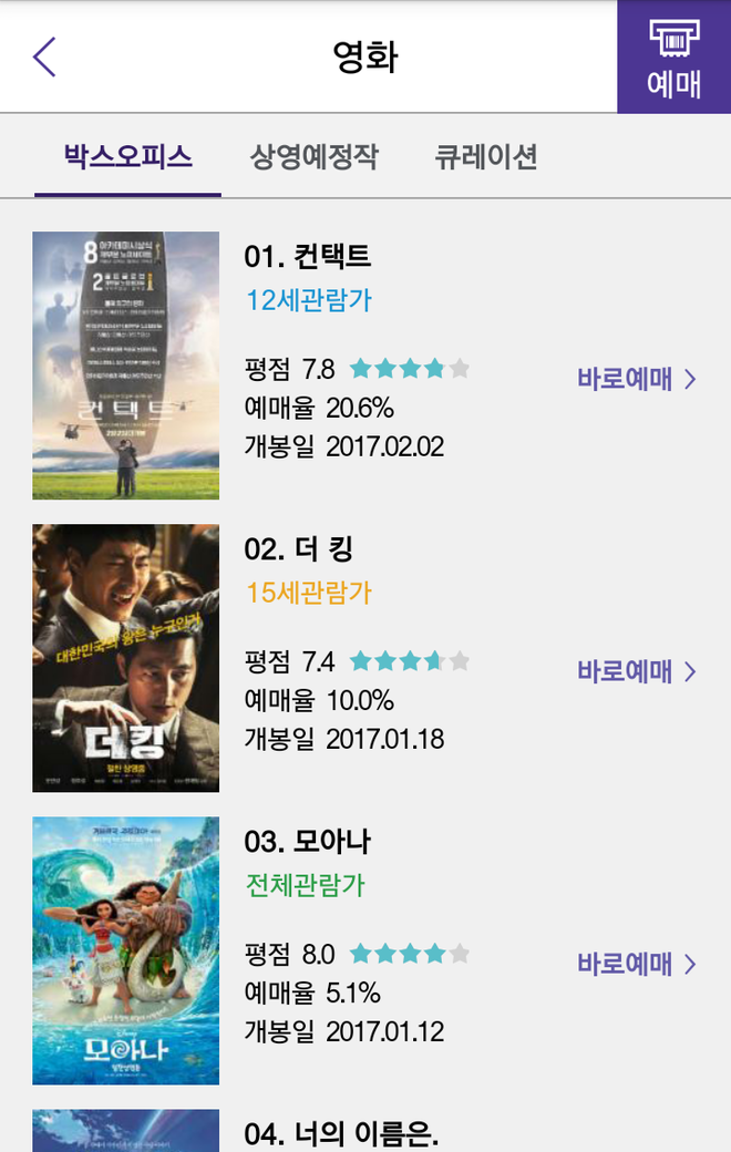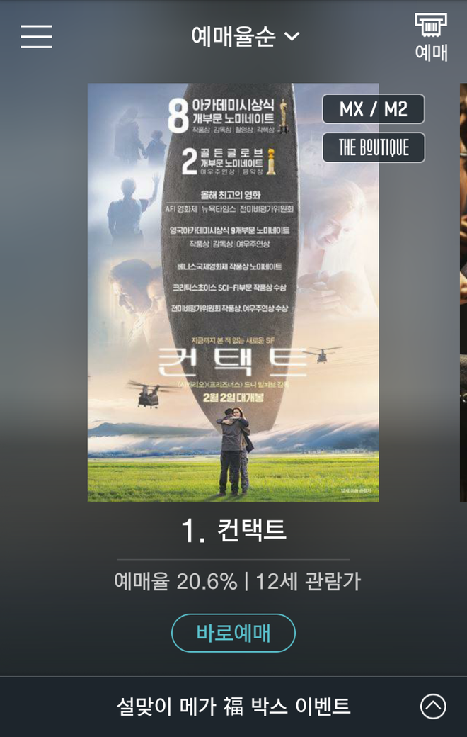 CGV 예매율순위에서는 공조가 컨택트의 2배네요.