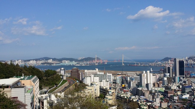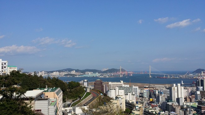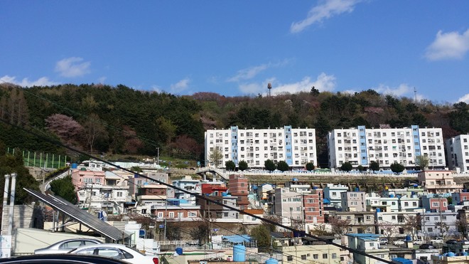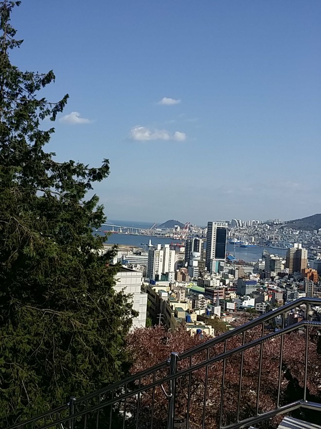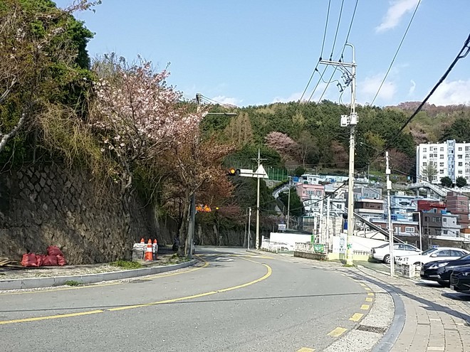 4월 무렵에 부산 동구 산복 도로는 벚꽃과 산의 푸른 녹음과 홍매화 덕에 멀리 탁 트인 바다가 어우러져 가장 이쁘게 보이는지라 오래간만에 스쿠터를 탔습니다.