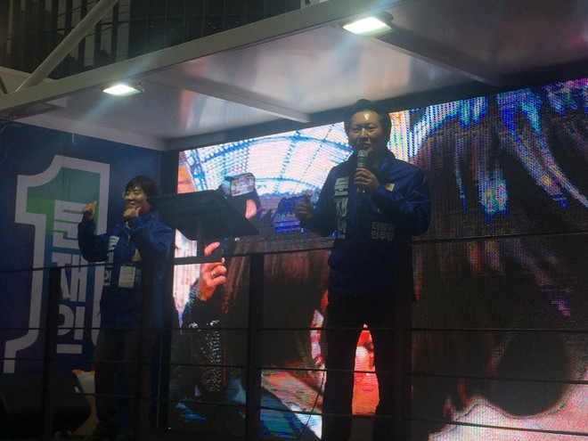현재 명동에 정청래 나타났습니다.