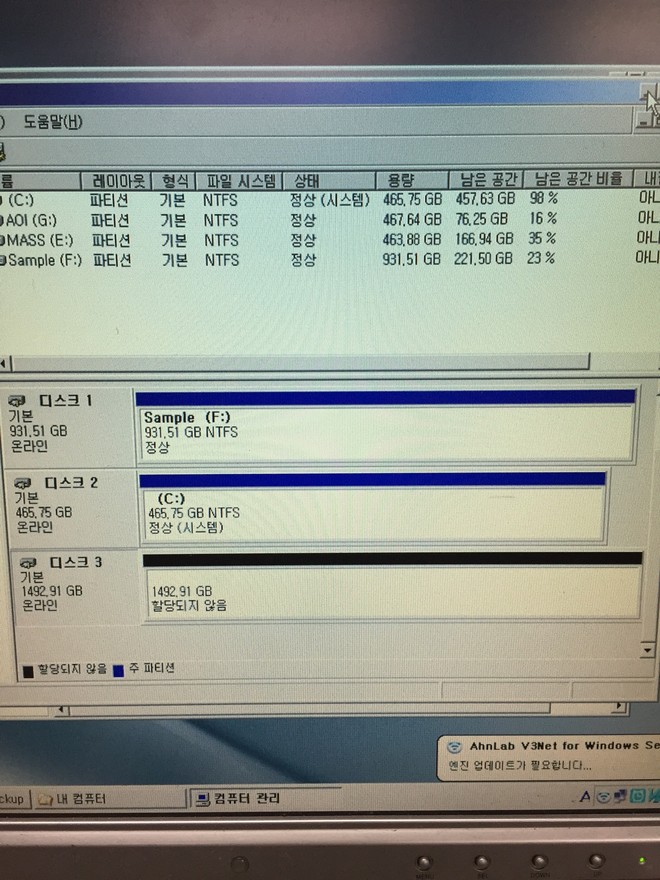 오늘 갑자기 오프라인 되더니 백업자료 날라가고 1.6테라만 인식됩니다.