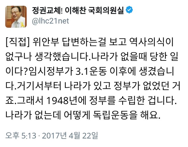 저런 역사인식의 배후에는 뉴라이트가 있거나 뉴라이트 관련된 정책보좌진이 상존하는거죠.