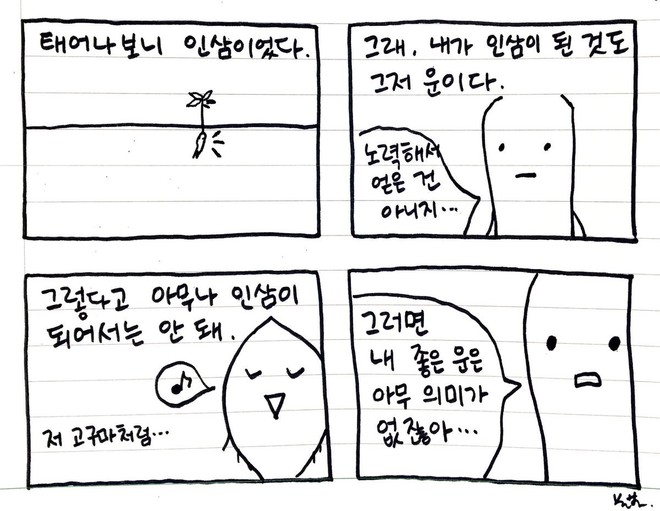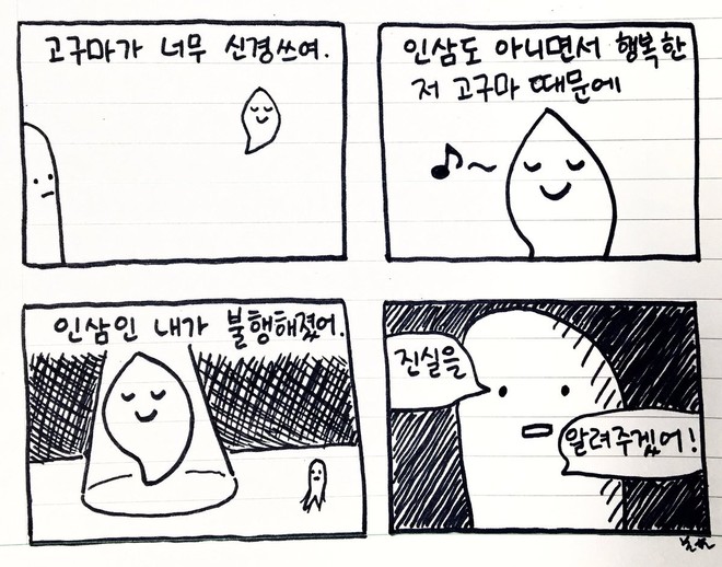 인삼 표정의 변화 : ' _' → o _o → ' _'