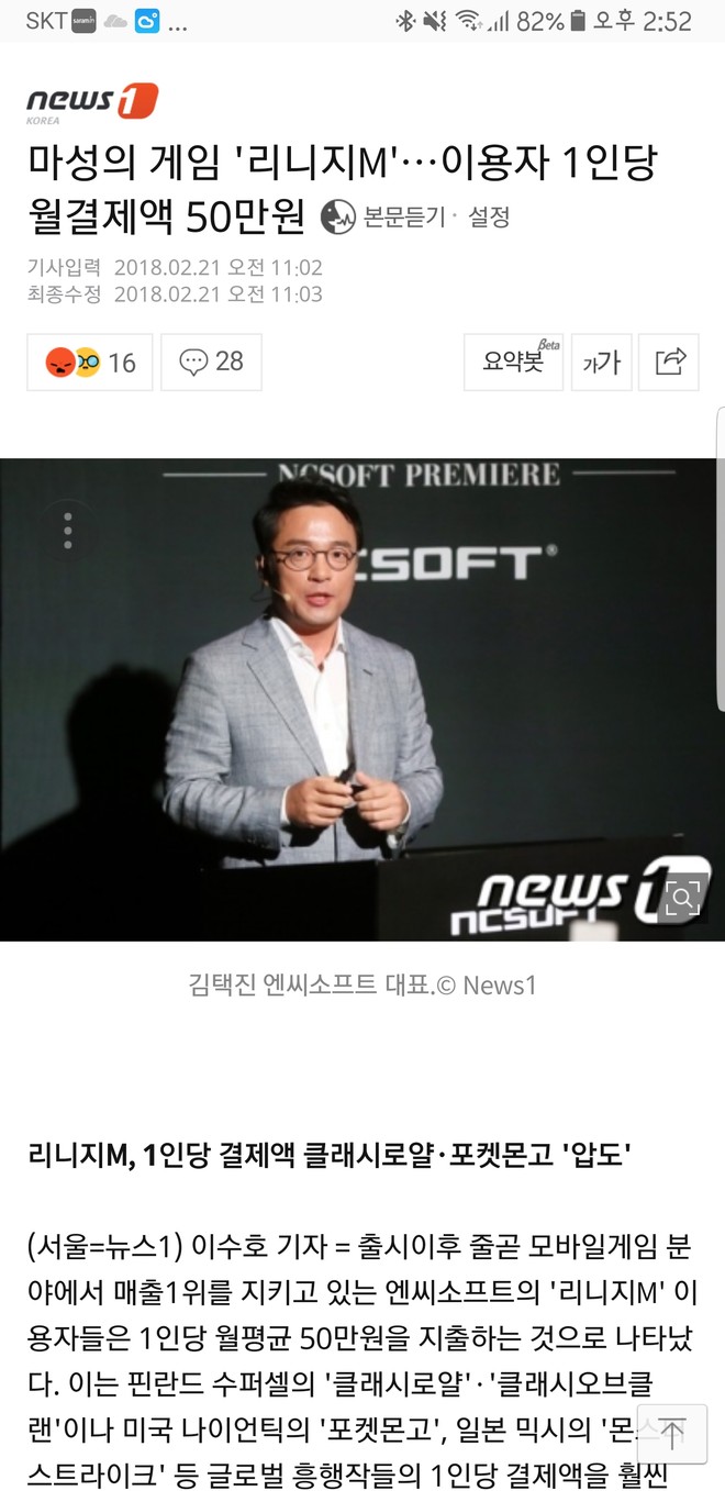 알려진 바로는 리니지M 월매출이 400~500억입니다. 하루 10~20억 정도... 구글에서만. ios는 모르겠구요.