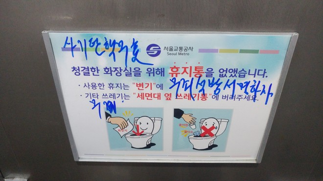 "사용한 휴지는 변기에 무죄석방 서명하자"