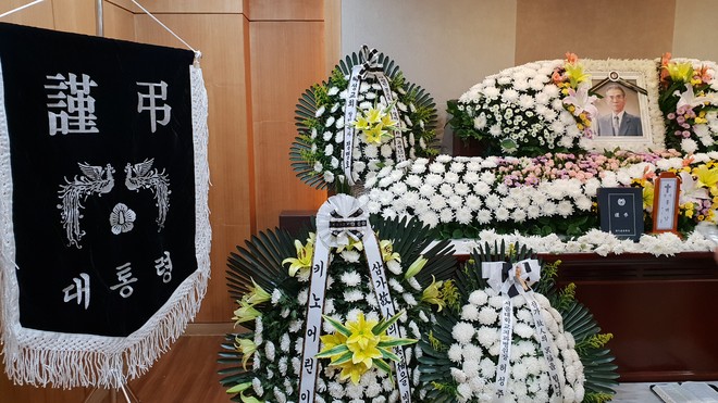 문재인 대통령 명의의 근조기였습니다.