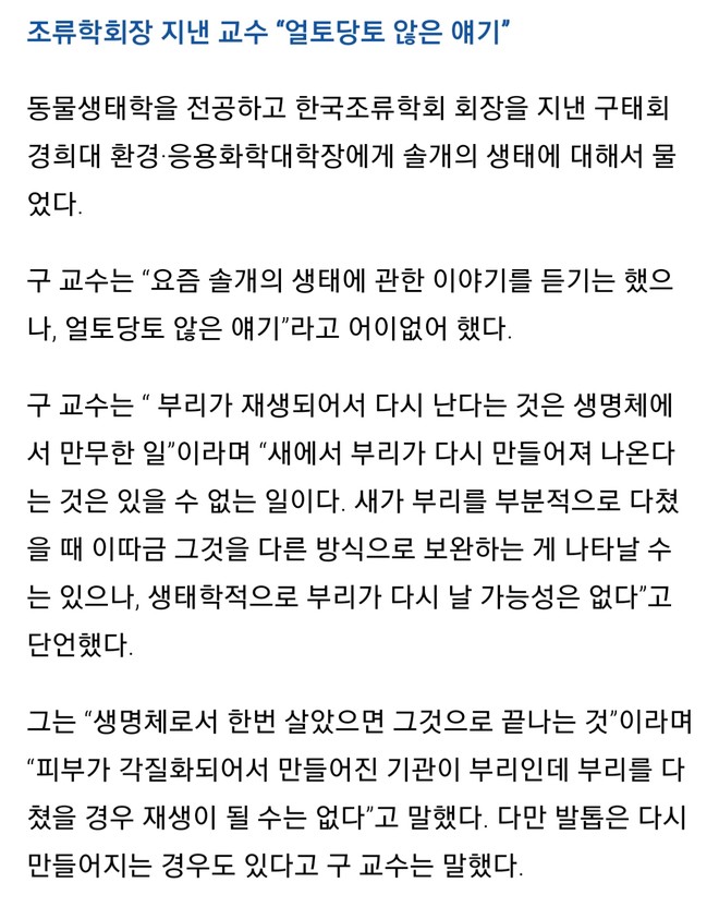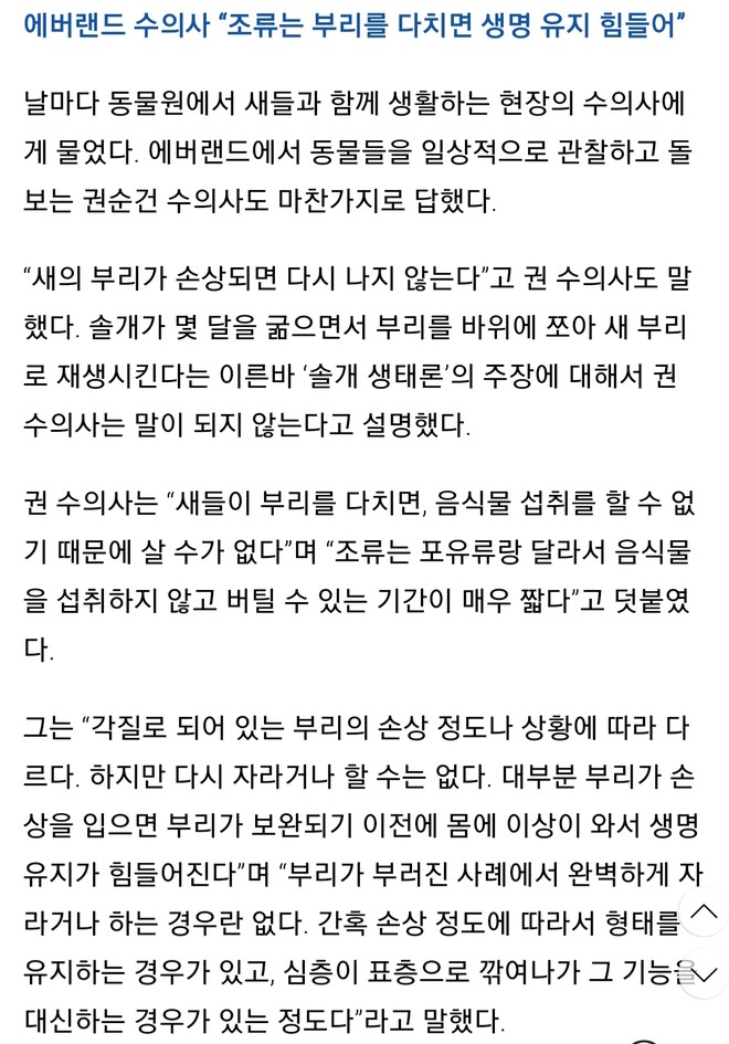 솔개가 플라나리아도 아니고 무슨 부리를 재생한다는 소린 난생 처음 들어보네요.