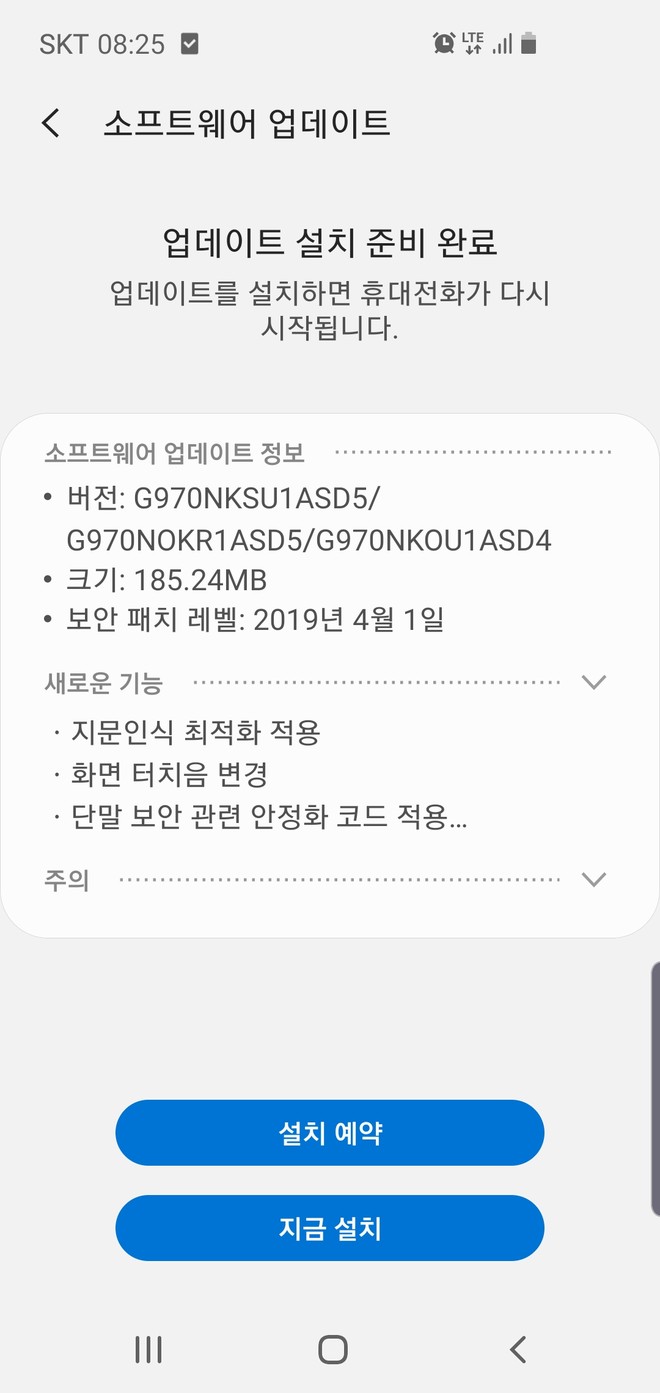 갤럭시 S10e 업데이트가 있네요~ 내용 없음