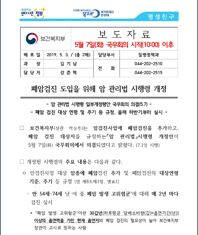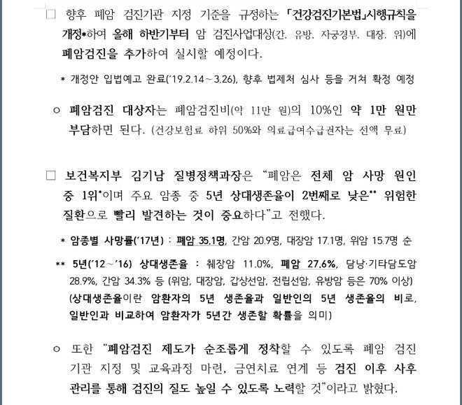 검진해서 폐암 초기에 걸러내는 게, 나중에 폐암 말기 치료로 건보 재정 나가는 것보다 훨씬 쌉니다. 그래서 이렇게 하는 것이지요.