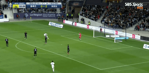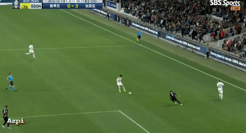 왼쪽 수비수는 구경하네요.
