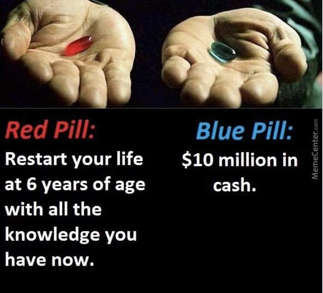 빨간약을 골라서 10년전 돌아가신 아버지께 사랑한다고 말하며 안아드리고 싶지만, 그러면 제 아들들을 다시 만나지 못하게되는건 아닌가 하는 걱정에 쉽게 결정을 못하겠습니다.
