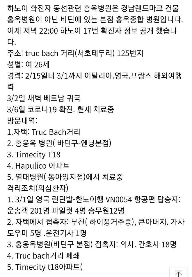 의도적으로 이탈리아에서 확진자를 만나고 바로 귀국안하고 영국을 거쳐서 귀국하는 바람에 격리없이 하노이도착, 그 사이 유니클로 개점식, 클럽등을 전전하는 바람에 베트남 사람들이 슈퍼빌런이라 엄청 화내고 있습니다.