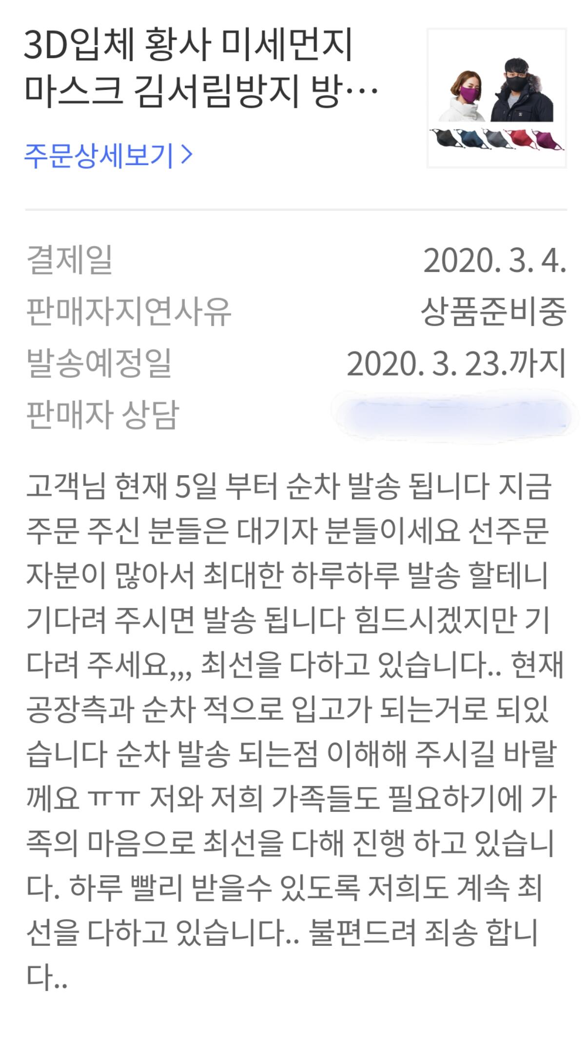 2월 26일에 6개짜리 입마스크 주문했다가 하도 안와서 오늘 반품신청 했습니다.
