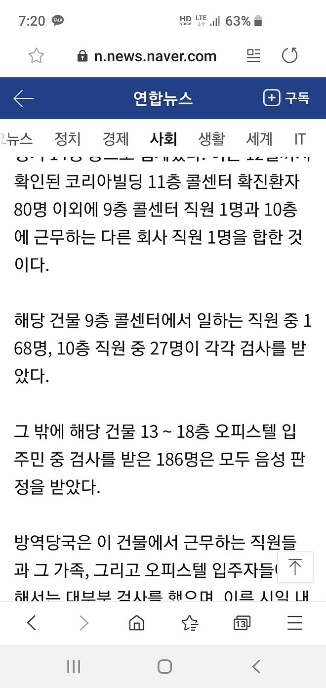 11층에 무려 80명의 확진자가 있는 상황에서 2주 가까이 생활했음에도 13층-16층 오피스텔 주민들은 전원 음성이라고 하는거 보면.....