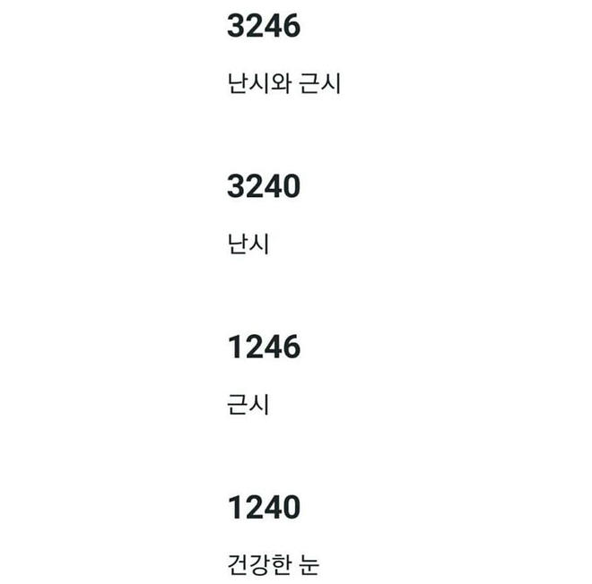 잠깐만 안경 쓰고도 3246이 보이면 뭐죠? 난시 근시는 맞는데....... 안경 벗으면 더 확실하게 3246이긴 한데 안경 쓰고도........