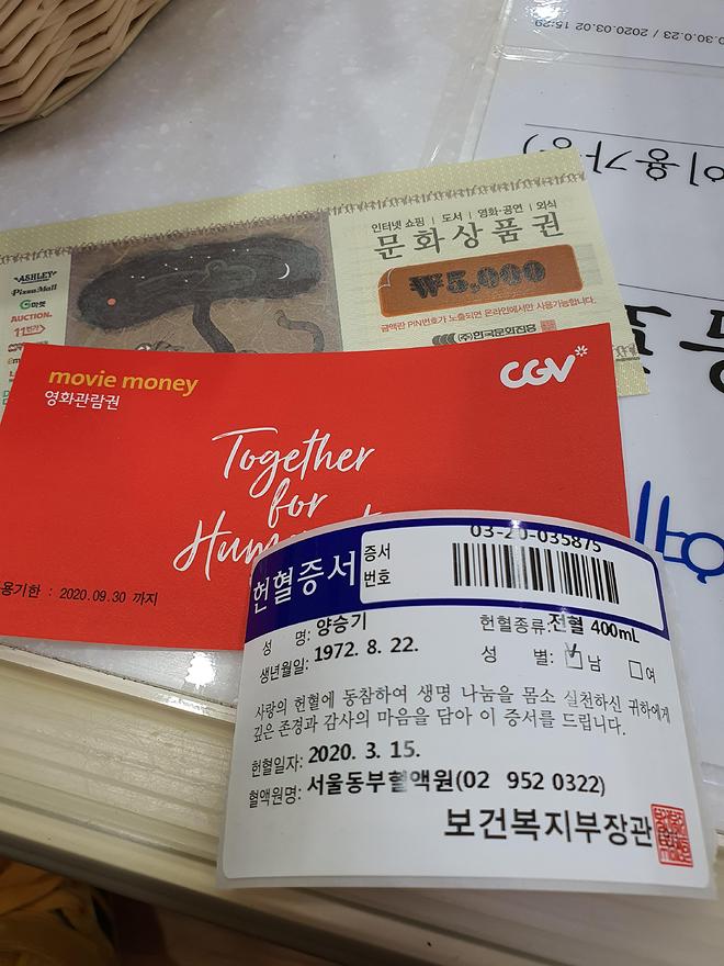 요즘엔 헌혈하면 마스크 도 줍니다.