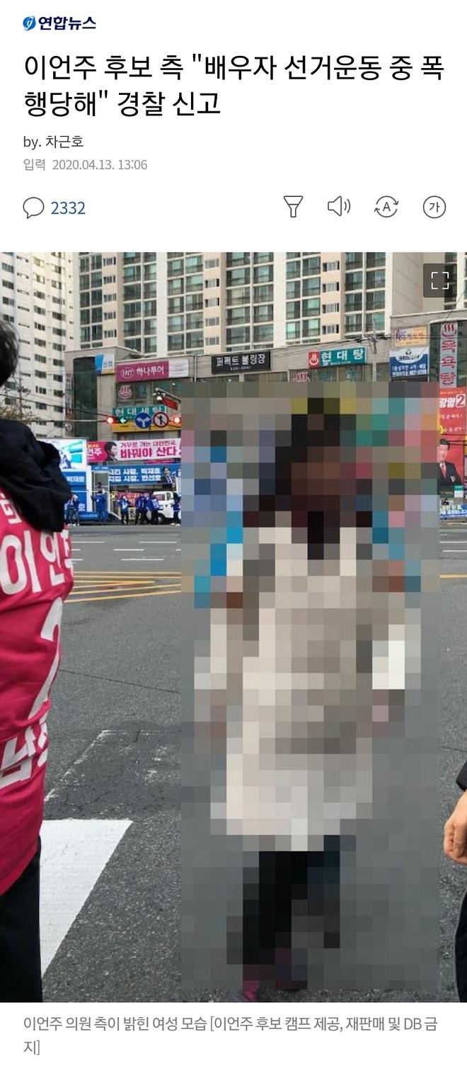 "이 여성이 A씨를 폭행하며 '민주당 박재호 의원이 당선돼야 한다'는 취지의 말을 여러 차례 했다"면서 "이 후보 배우자는 당시 '이언주 남편'이라고 적힌 옷을 입고 있어 누군지 모르고 폭행하지는 않았을 것"이라고 설명했다. 진짜?? 여자가 폭행하는데 그런 얘기를 하면서 했다고?? 영상은 없고? 선거막판이 되니 여기저기 가관이네요...