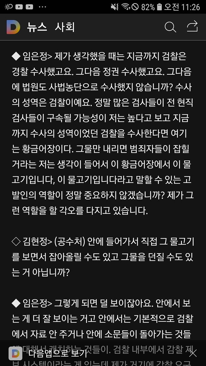 캡처해주신 내용외에도 인터뷰내용 전체가 상당히 재미있습니다. 링크로 들어가서 보시길 권해드립니다. 임은정검사 상당히 자신감 있으시더군요.