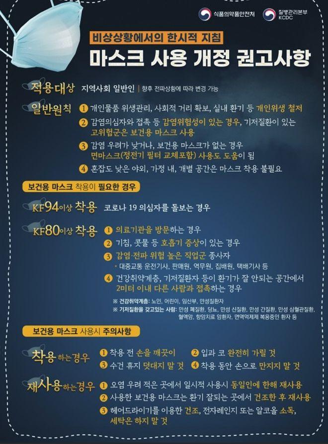 그러나 코로나19가 빠르게 번지면서 대부분 나라들이 WHO의 지침과 달리 일반인들에도 마스크 착용을 권하거나 의무화했다. 미국은 지난 4월 외출 시 마스크 착용을 당부했다. 유럽국들도 4~5월 들어 봉쇄 조치를 완화하면서 밀집도가 높은 장소에서 마스크를 쓰라고 강조해 왔다.