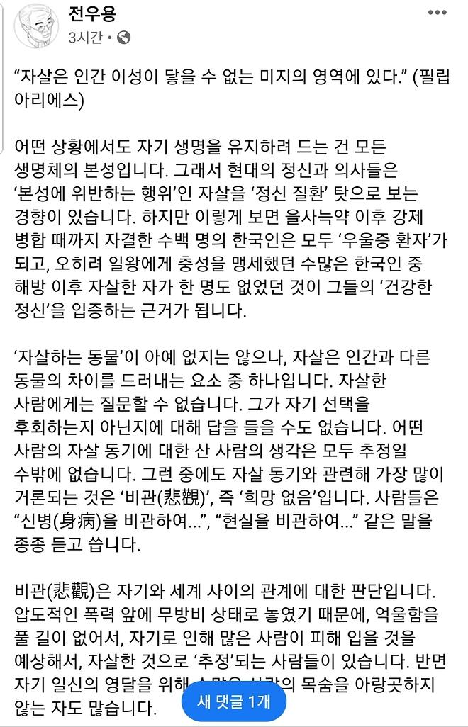 애초에 인간사에 있어 자살이라는 것이 윤리와 뗄수 없는 관계로 보여지구요.