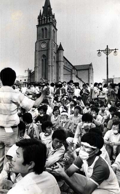 전국민적 저항이 명백하게 '시각화'되고 따라서 정부에게 '두려움'을 심어주는 중요한 기획이었죠. 사실 대규모 시위의 가장 큰 효용은 바로 이런 "시각적 효과"라고 볼 수 있습니다. 아무튼 이렇게 재야단체와 시민단체의 시위가 터지자 정부는 야권의 집회가 '폭력성을 드러낸 법질서 유린행위'였다고 지적하고 '앞으로 법질서 파괴 행위는 어떤 일이 있더라도 단호하게 대처하겠다'고 발표합니다. 물론 국본은 비폭력을 고수하였지만, 일부 학생단체가 화염병이나 짱돌등을 이용한 '폭력(?)'을 사용한 것도 사실이었습니다. 하지만 이들의 용기있는 행동도 매우 중요했습니다. 학생들은 "국민대회" 이후에도 지속적으로 산발적인 시위를 계속했고 저항에 계속 에너지를 부여했습니다. 특히 이들이 시위를 계속하면서 명동성당에 들어가서 농성한 것은 각계에 깊은 인상을 남겼습니다.