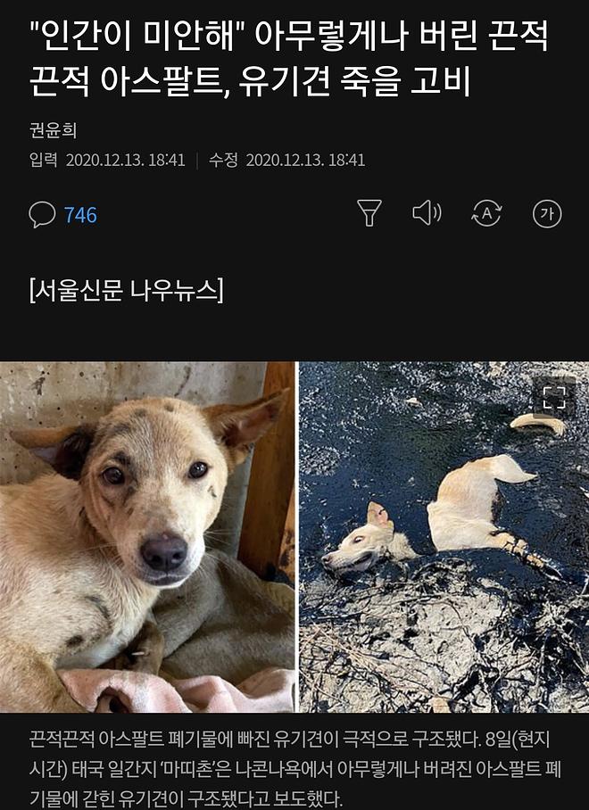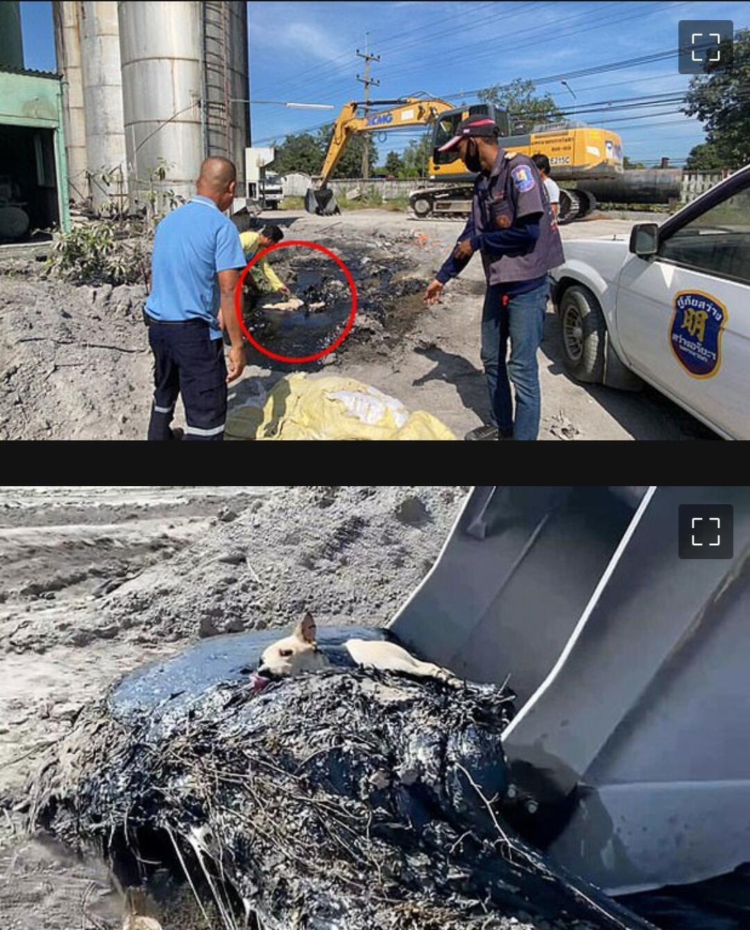 태국에 있었던 일인데 공사 후 아무렇게나 버려진 아스팔트 폐기물에 지나가던 유기견이 그만 빠졌버렸습니다. 인근 주민이 구하려다 여의치 않아 태국 소방서가? 출동해 겨우 구했다고 하네요. 이 유기견은 작년에도 인근에서 교통사고를 당해 다리가 부러졌었다고.