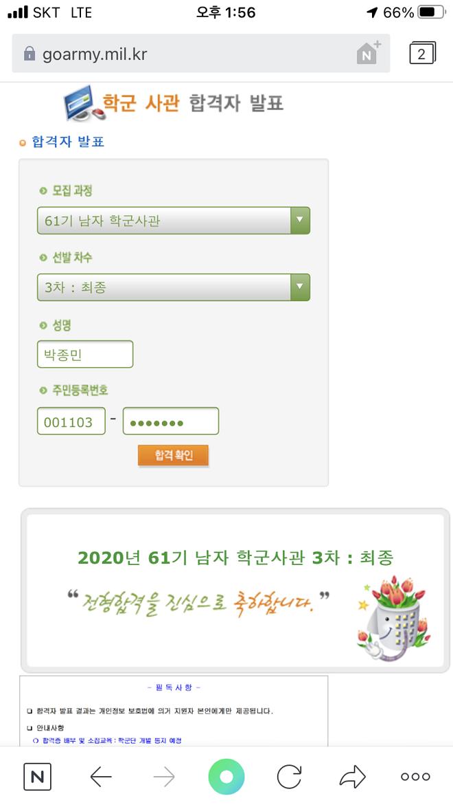 축하드립니다~ 처음 합격하고 각 대학교 학군단에서 집체교육을 하고 괴산에 학군교에서 기초군사훈련을합니다. 거의 병기본 훈련이나 사회물을 빼는 과정이라 어렵거나 위험한 훈련은 안하니까 걱정하지마시고 훈련 전까지 맛난거 많이 사주시고 격려해주세요~