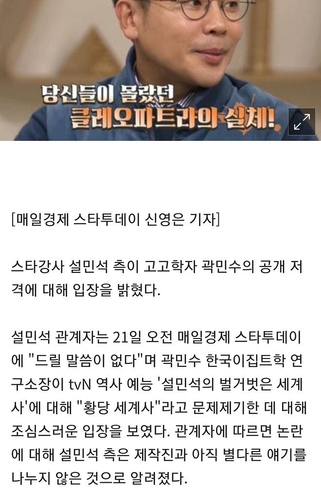 여기서 설민석이 방송사에서 주는 대본 읽었고 검토 하나도 안했습니다 하면 아예 커리어 끝나니까 오히려 반박 못하고 조용한거죠