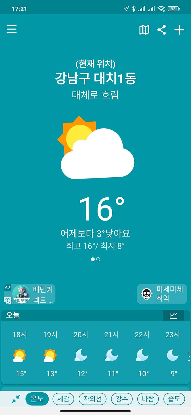 두 시간전만 해도 좋음으로 되어 있더니