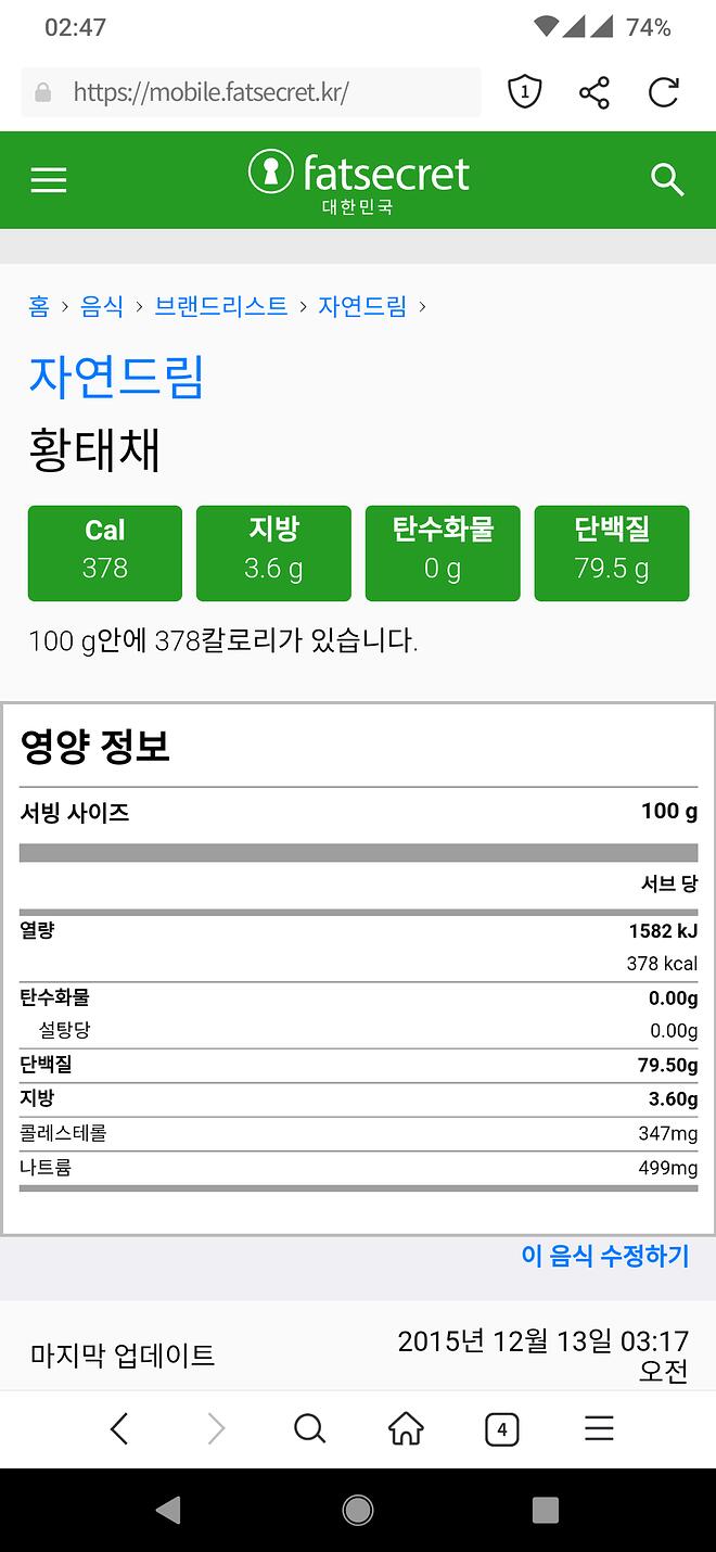 콜레스테롤과 나트륨도 많네요... 살짝 데쳐먹어도 단백질 변화 없을까요