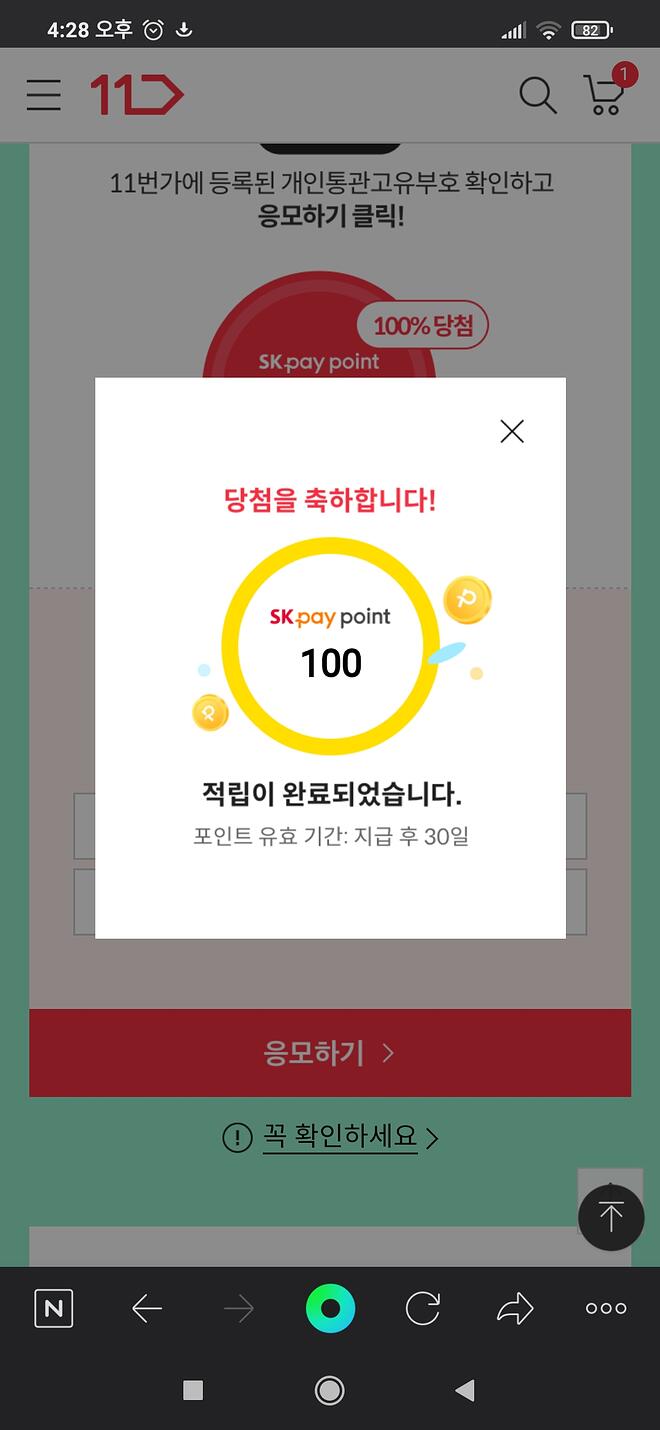 100포인트네요. 역시 11번가는 나랑 안 맞아.
