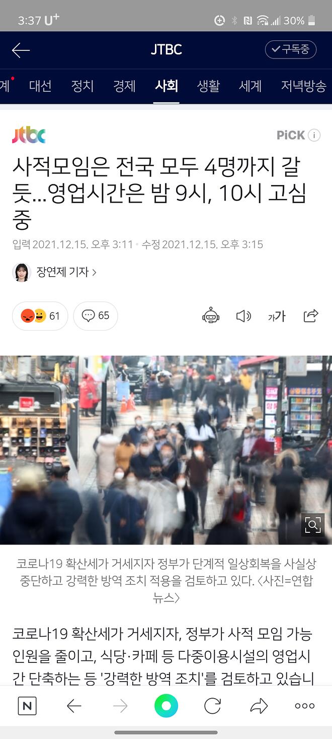 저는 사실 이번 방역강화조치가 큰 동의와 이해를 받을 수 있을까 걱정됩니다. 국민들의 피로도가 너무 높거든요. 이번에 꽤 길게 LA로 출장을 다녀왔는데 현실적으로 캘리포니아의 정책이 맞는게 아닐까 싶었어요. 백신 패스 의무화, 마스크 착용 의무화, 단 일상생활 규정은 없음. 백신접종 항상 가능. 코로나 검사할 수 있는 곳 많음. (진짜 생각보다 엄청 많습니다. 유료) 사람들은 그냥 본인이 스스로 조심하면서 일상 생활 하더라고요. (자가격리 10일 걸려서 출장 다녀와서 갇혀 있었...)