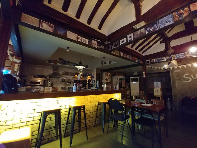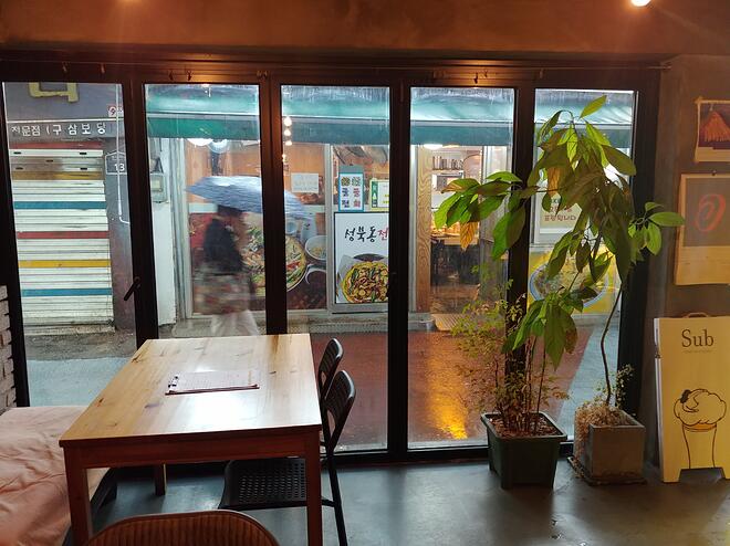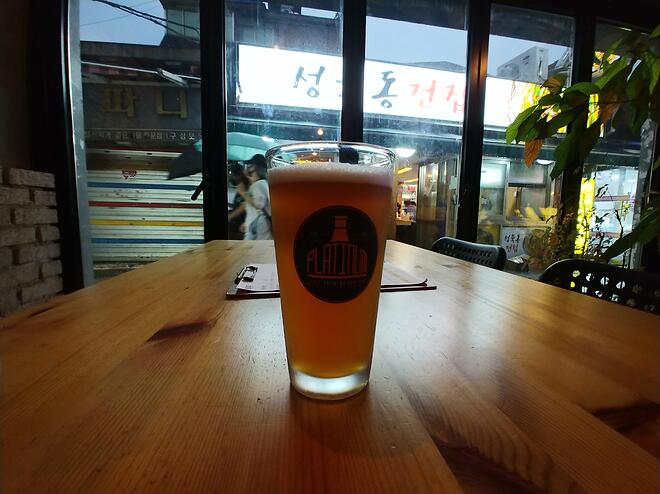 시장안의 수제맥주집..독특하죠? 오래된 돈암동 옛 작은 한옥을 리모델링한 펍이죠. 천장의 한옥구조를 보면서 마시는 맥주맛도 좋고 작은 한옥안에서 맥주를 마시는 느낌도 좋네요. 이날은 마침 장마비가 굵게 퍼붓고 있어서 분위기도 만점이었고 술맛도 좋았습니다. 그래서인지 간단히 한두잔 하러 들어갔다가 다들 분위기에 취해서 꽤 많이 마셨고 그 다음날 두통이..ㅠ