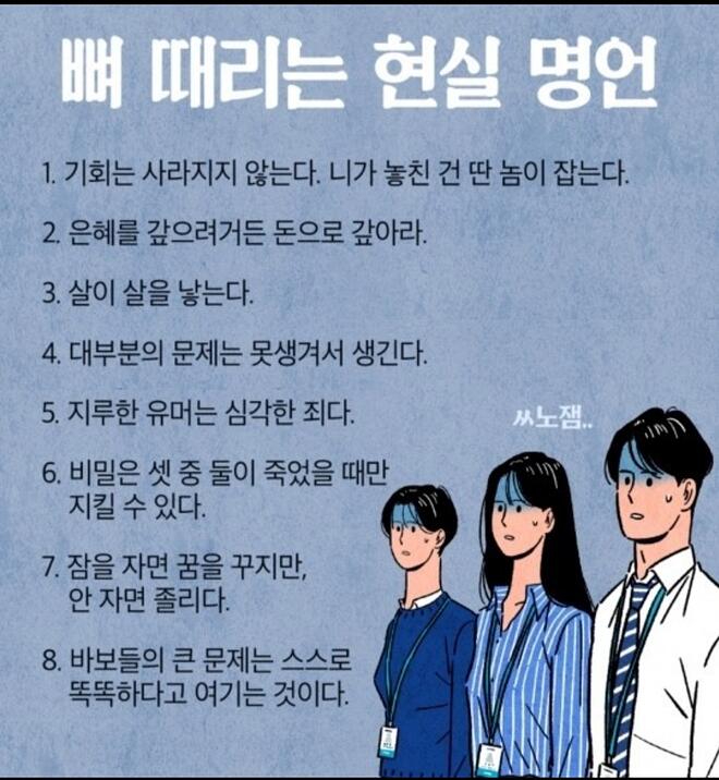 1번은 시대와 세대를 초월하는 명언이네요. 옛 어르신들이 입버릇처럼 하던 얘기중에... <무슨일이든 다 때가 있는 법이여...>