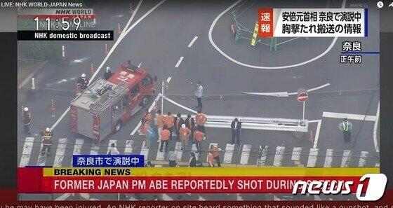 아베 전 총리 나라시에서 연설 중 총에 맞아 심폐 정지 상태>