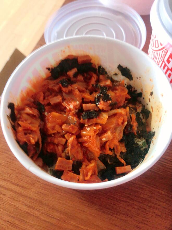 오늘 점심에 컵밥을 먹었네요 잡채밥 장작삼겹 볶음김치 치킨마요, 토마토 스파게티등등을 시켜서 먹었네요 1500원 할인해서 29000원인가 나왔어요. 맛있게 먹었습니다.