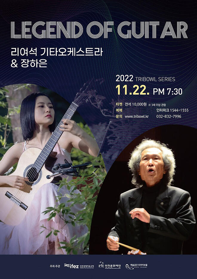 저도 이번에 처음 알았는데 괜찮아보이네요 기타 오케스트라도 흥미로워보이고 슈퍼밴드 2에 나왔던 장하은 양의 연주도 들을 수 있고 그리고 가격이 착합니다 (1만원 - 이음카드 있으면 7천 5백원) 우연히 공연 포스터를 보고 오케스트라에 대해 검색하다 본 기사 중에 하나 링크해봅니다 http://www.incheonilbo.com/news/articleView.html?idxno=944421 그리고 장하은 양이 협연을 전에도 몇번 한 걸로 보이던데 리여석 단장님이 장하은 양의 아버님의 스승님이라고 합니다