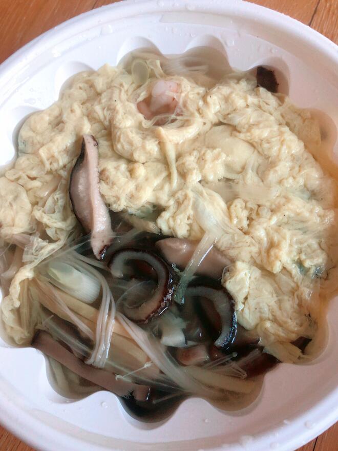엄밀하게 말하면 사진의 음식이 기스면이 아닙니다. 닭국물(계-기)에 실처럼 가는 면(사-스)면이거든요. 울면은 비슷한 재료에 전분을 넣어서 국물이 좀 더 걸쭉하고. 중화우동은 특징이 잘 기억이 안나네요.