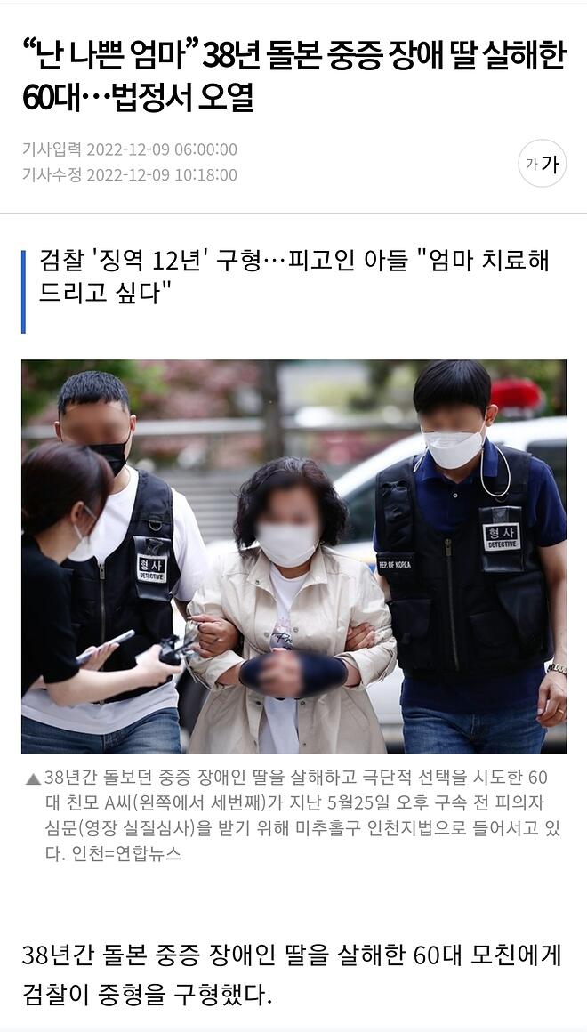 https://m.segye.com/view/20221208517994 어머니 심정도 충분히 이해가가고 참 안타깝고 비극적인 사건입니다 검찰이 중형 구형이 아니라 선처를 해줘야하는 사건이라 생각하네요