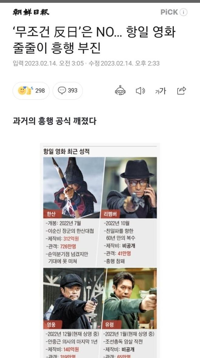 왜국영화 흥행하고 항일영화 물 먹으니 가슴이 웅장해?