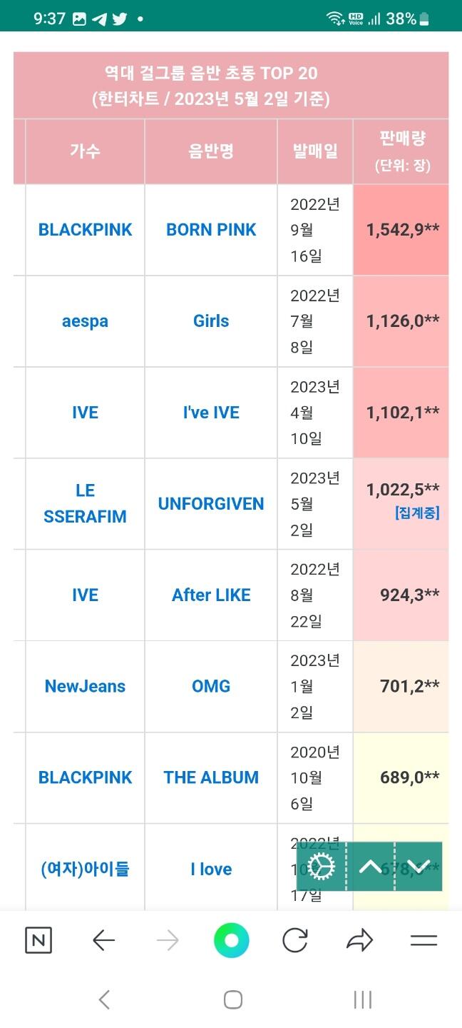 [연예] 역대 걸그룹 초동 첫날 순위 ㄷㄷ