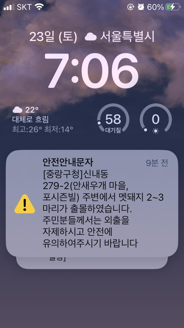 용마산에 멧돼지 출몰했다는 뉴스를 21년도에도 들었던것 같은데.