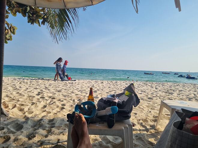 선착장에서 페리를 타고 코사멧섬을 왔습니다.어느 곳이나 관광지 섬의 바가지(?)나 물가는 어쩔 수가 없나보네요.한국 기준으로는 별 큰돈이 아니기도 하지만,묘하게 빈정상한다고 해야하나.....섬 입장료부터 외국인은 200바트(7000원)를 받고..그래도 기분좋게 놀기로 해야죠 모