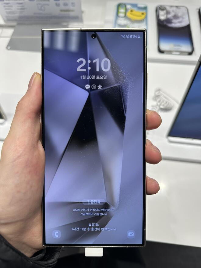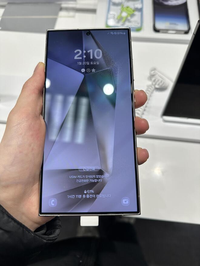 확실히 티타늄 소재를 써서 그런지 들었을 때 크기에 비해 무겁다고 느끼진 못했고 디스플레이 글라스에 저 반사 기술이 들어갔다고 합니다 덕분에 주간에도 좀 더 선명하게 볼 수 있겠네요 그리고 오랜만에 엣지에서 평면 글라스로 변경됐습니다